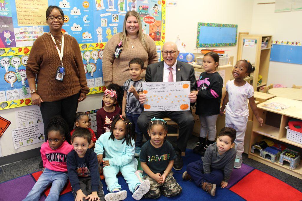 Wilkes-Barre Mayor George Brown visited the Lynn Evans Biga Center and read “There Was an Old Lady Who Swallowed Some Leaves!” to Classroom #4.